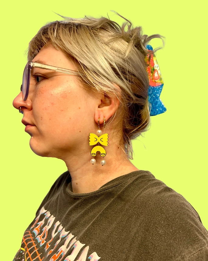 Whether you're heading to a party, a protest, or just the grocery store, The Peach Fuzz’s hair accessories will make sure you’re noticed for all the right reasons. Trust us, these pieces are *CAMP* with a capital C! And you can find them under the "Accessories" --> "Hair Accessories" tab in our menu.